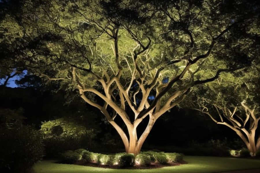 C’est aussi le moment de valoriser la structure du jardin 🌳 : un projecteur dirigé vers un bel arbre, un massif persistant ou un muret permet de jouer avec les ombres et les volumes. En jouant sur les contrastes, la nature se révèle autrement, sans être éblouie 👀.