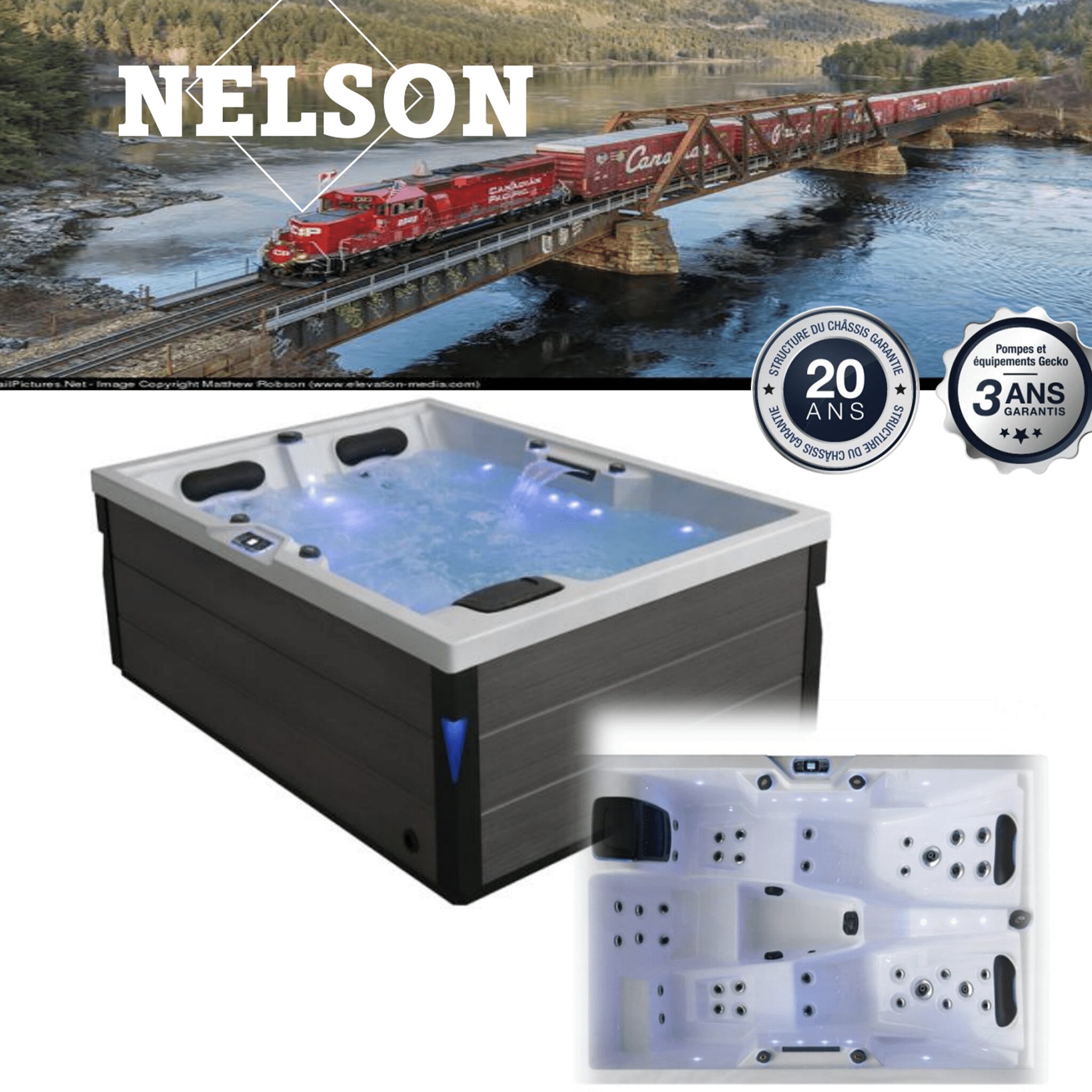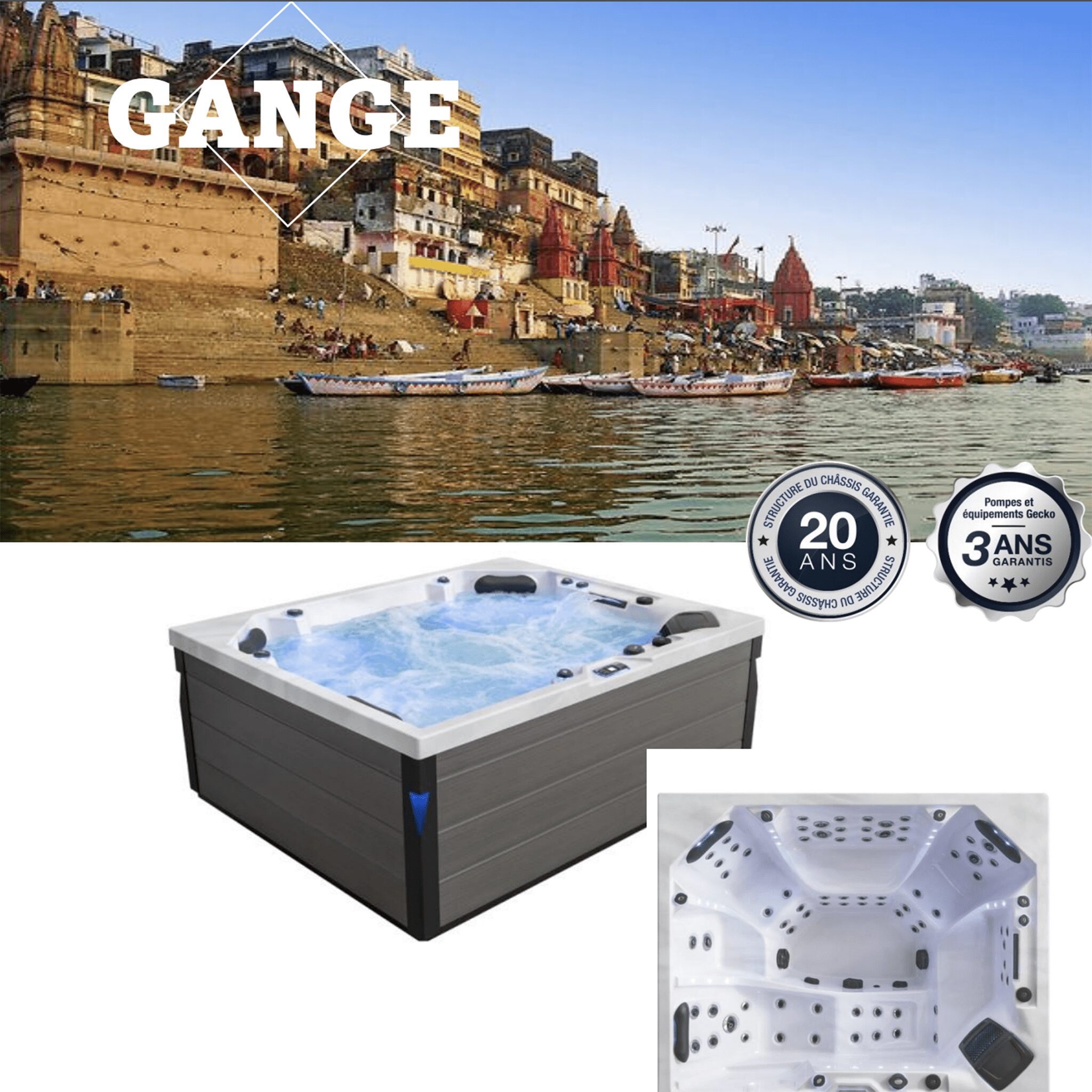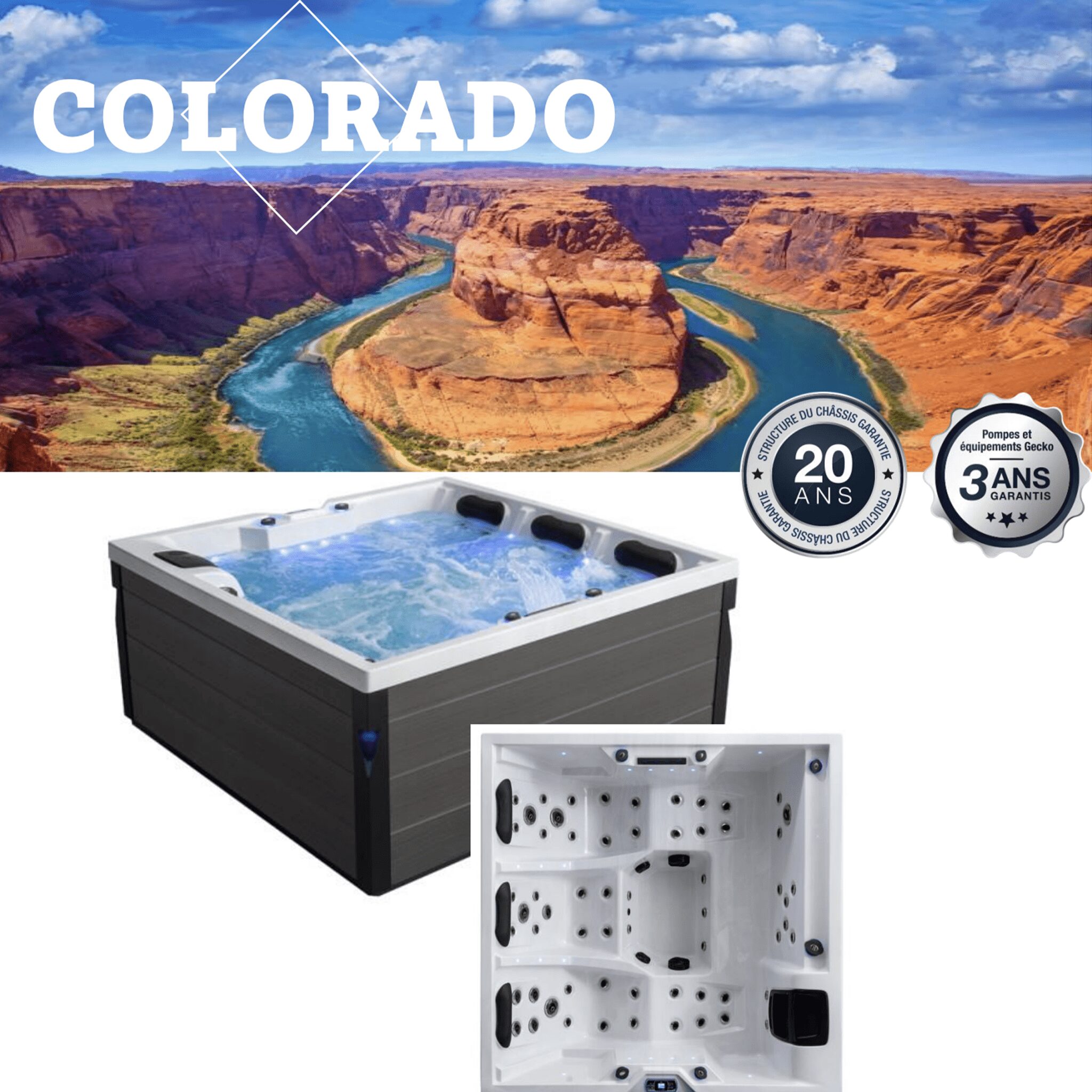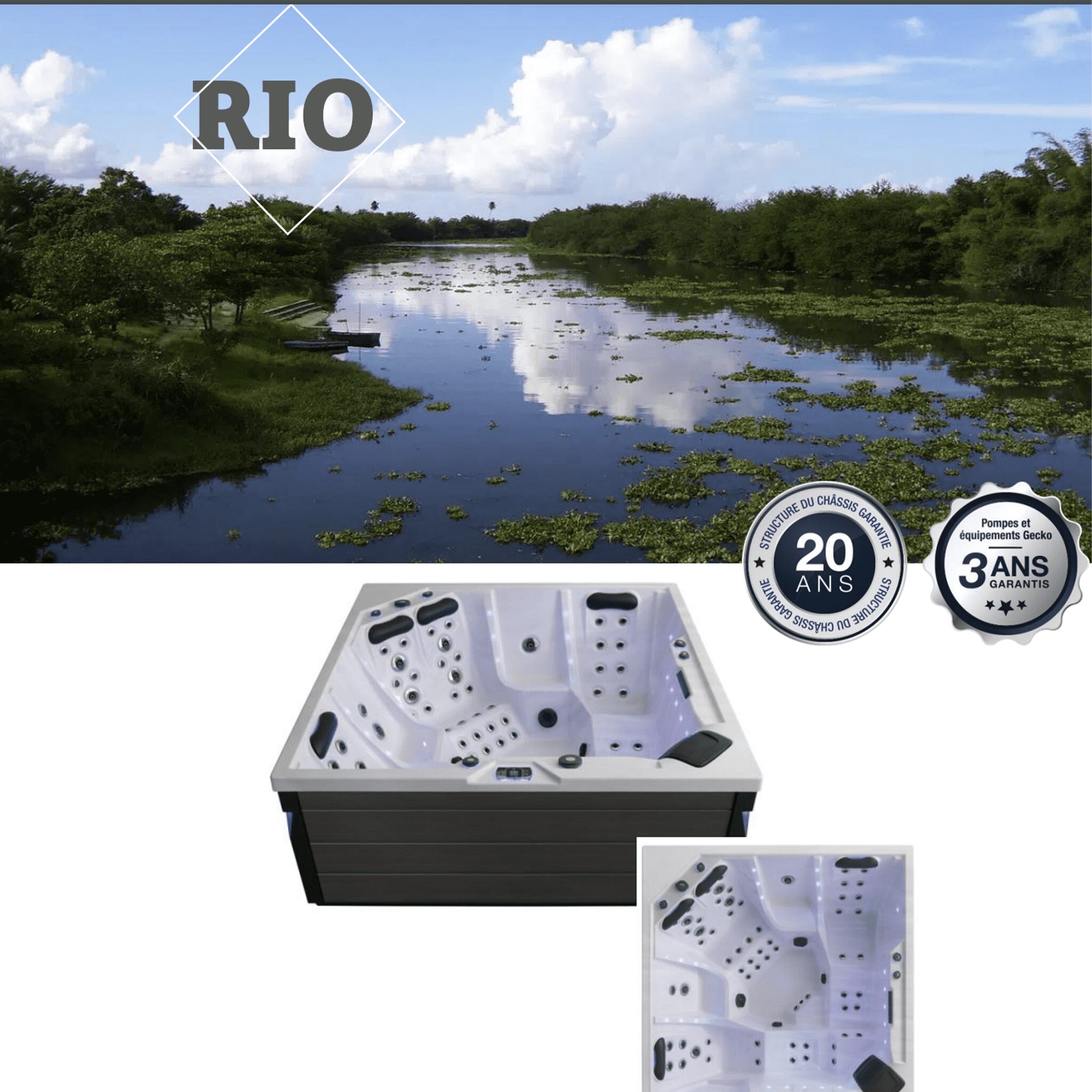 Découvrez le spa MISSISSIPI de conception française, alliant élégance, performance et engagement écologique. Avec des dimensions extérieures de 2000 x 2000 x 900 mm, ce spa premium est l’incarnation même du confort.